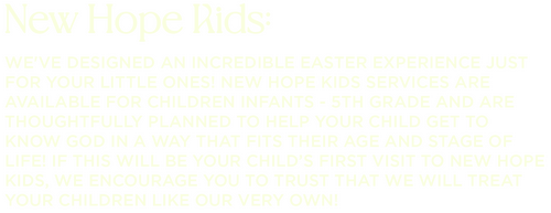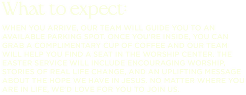 We want your Easter experience to be comfortable and transformational! If you have any questions, please submit this form and we will respond to you as soon as possible!